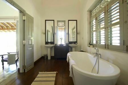Tucked into the vibrant paddy fields of Galle, Ivory House combines cutting edge design with Dutch colonial style to create a villa that is both chic and comfortable. There are two beautiful master suites and two equally impressive queen bedrooms with overhead fans and air con. All are en suite, three with indoor/outdoor bathrooms. Large retractable shutters surround the house and open out onto the paddy, allowing the beautiful rural scene to flow in with the cooling breeze. The enticing 20m pool accommodates all; those looking to relax, refresh and submerge or the more energetic length-types. The pavilion maximizes time spent poolside with a BBQ, shade, shower and bathroom facilities.