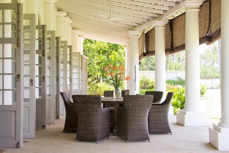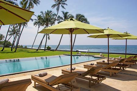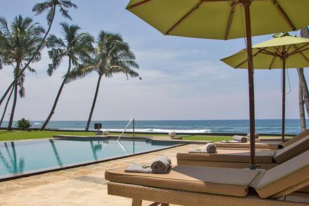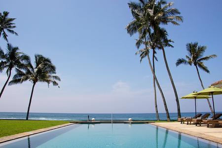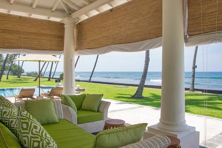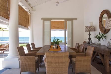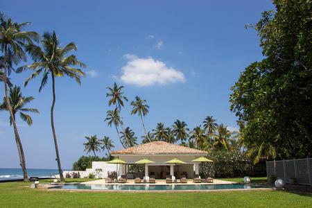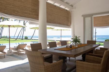 The lawn is large and manicured with dancing palm trees that bend this and lean creating a magical romantic setting as the evening sun slides into the ocean. The tiled pool is large enough for strenuous activity or for floating around and lunch can be taken in the pool side pavilion or on the main villa verandah. There is an indoor door air con dining room to escape the humidity if it is preferred with an adding kitchen to create a dinner party feeling every evening.