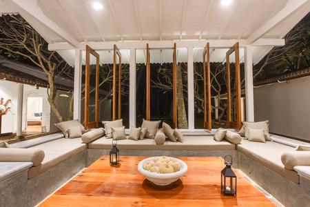Entering the property via stepping stones across a large carp filled pond you face a large wall that adds to the excitement and anticipation of the views behind it and also provides backbone of the house. Designed by acclaimed architect Bruce Fell Smith it is from this point, as you venture around the wall, that you are truly able to leave one world behind you and enter into the other, altogether more blissful one offered by this stunning villa.
